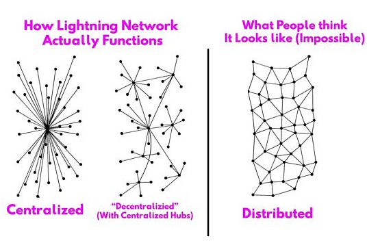 闪电网络是中心化的。