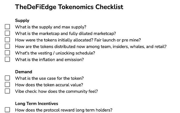 我为你创建了一个代币经济学的检查表(我知道你需要它)。