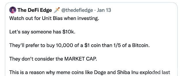 他们看到某个 meme 币的价格为 0.000000002 美元,并认为一旦它达到一美元,他们就会实现一个小目标。但当你了解代币的市值就会发现这是不可能实现的。meme 币的价格达到 1 美元意味着它比世界上所有的货币供应量都大。
