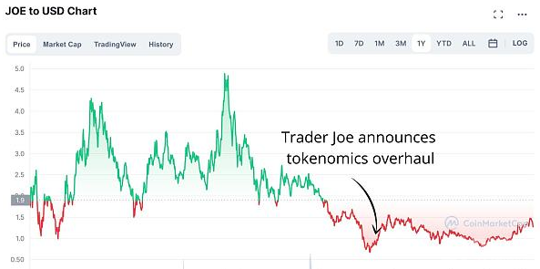 Trader Joe 刚推出时有一个基本的代币经济学结构。他们在第 1 季度对其模式进行了重大调整。之前是对 Joe 进行质押,你得到协议收入的 a%。