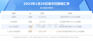 腾赚网为您提供港币兑换英镑汇率最新价格详情。 2023年1月28日港币对英镑的汇率为:0.10323 2023年1月28日英镑对港币的汇率为:9.68711 2023年1月20日英镑人民币中间价8.3915,瑞士法郎人民币中间价